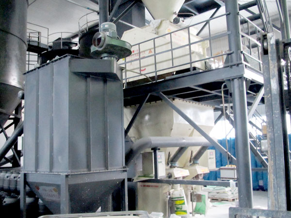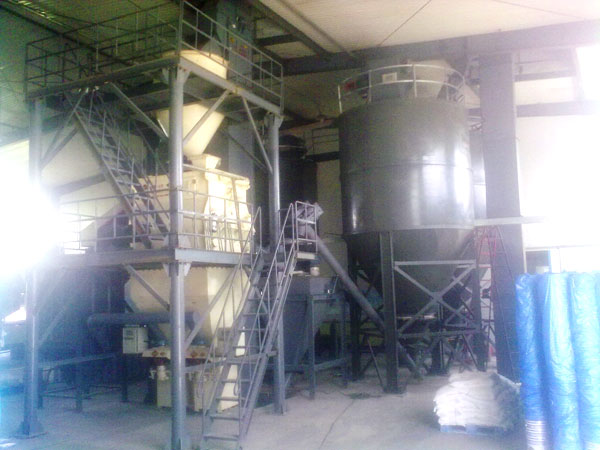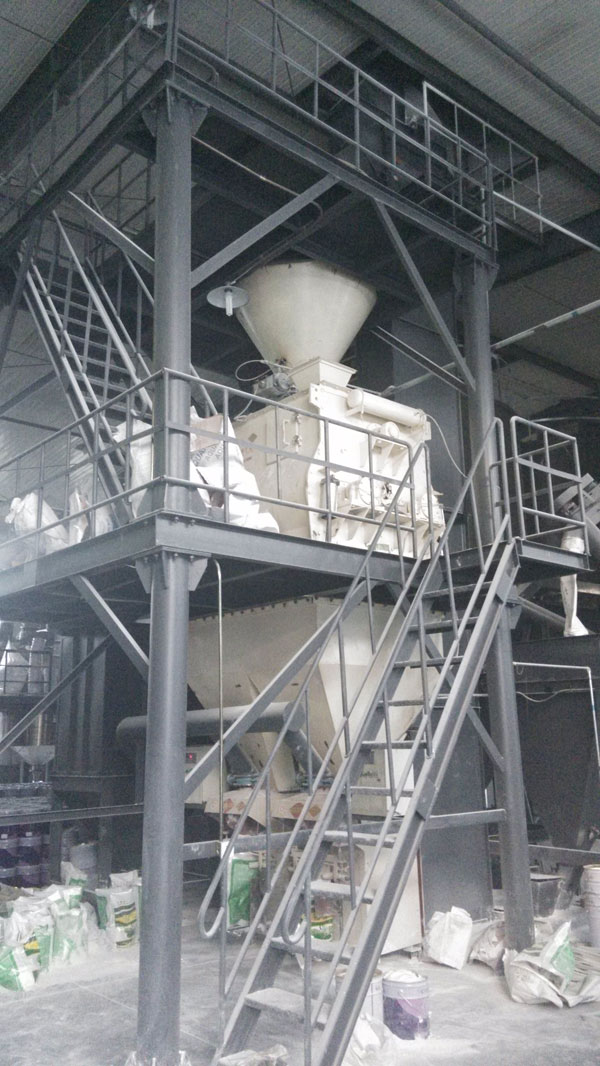主要配置:原料倉,自動計量配料及稱重裝置,斗式提升機,待混倉,高效混合機,喂料機,成品倉,自動稱量包裝機,脈沖除塵器,支架爬梯平臺,電器控制柜等組成。