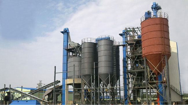 主要由提升輸送系統(tǒng)、計(jì)量配料系統(tǒng)、混合系統(tǒng)、儲(chǔ)料系統(tǒng)、包裝系統(tǒng)、除塵系統(tǒng)、控制系統(tǒng)、鋼架平臺(tái)等組成。