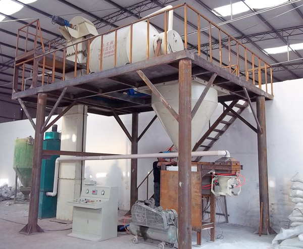 主要配置:原料倉,自動計量配料及稱重裝置,斗式提升機,待混倉,高效混合機,喂料機,成品倉,自動稱量包裝機,脈沖除塵器,支架爬梯平臺,電器控制柜等組成。